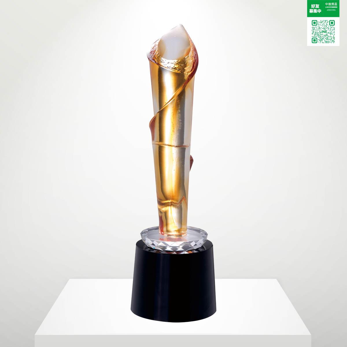 尺寸: 9*9*32 CM 材質 : 琉璃+水晶 內容 : 含雕刻字+上金+錦盒+提袋